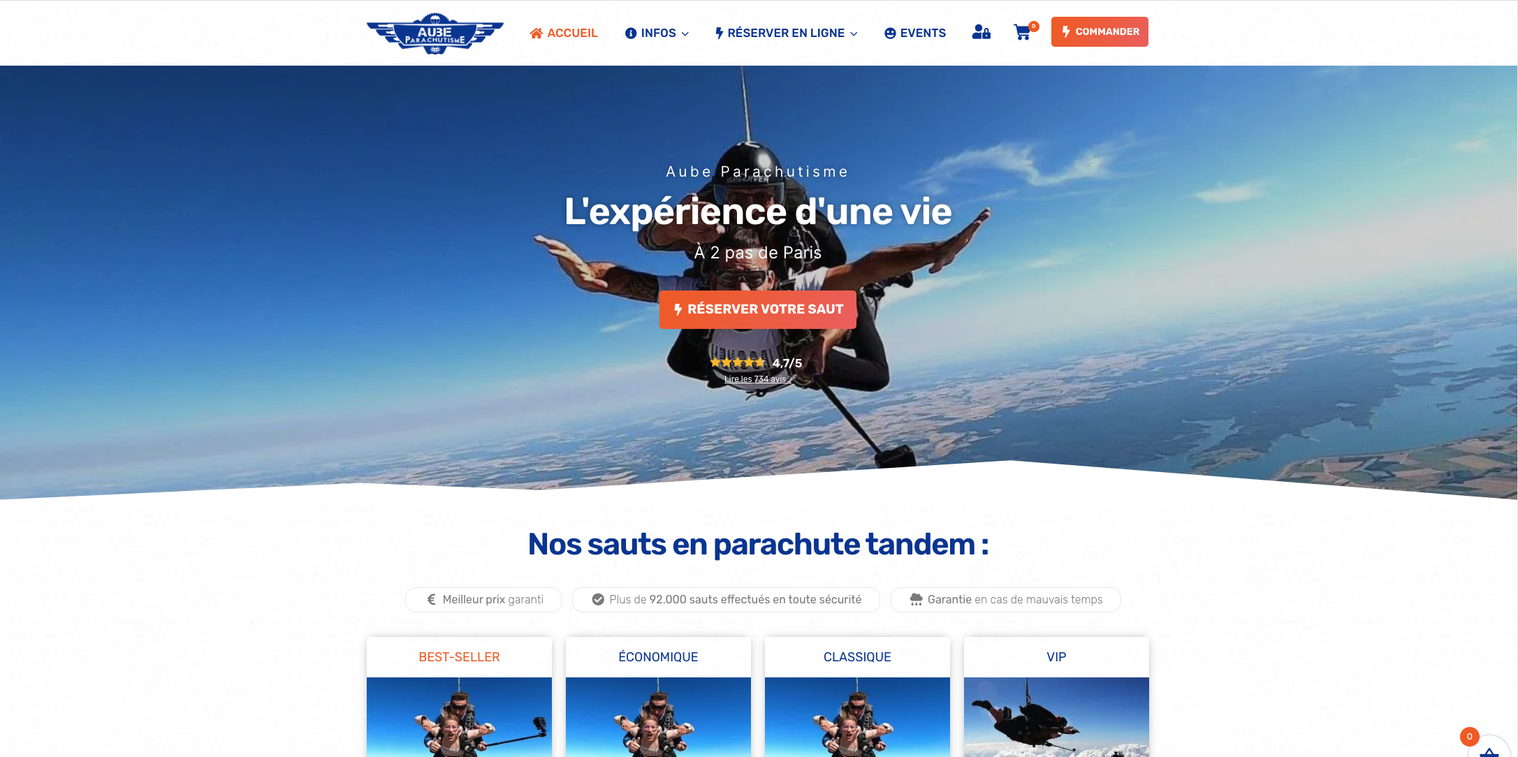 FORMULAIRE DE CONTACTAube Parachutisme souhaitait disposer d’un site internet vitrine afin de présenter ses prestations de parachutisme, mettre en avant les sauts en tandem, les formations et les options disponibles, tout en offrant aux visiteurs toutes les informations nécessaires pour vivre une expérience sécurisée et mémorable.