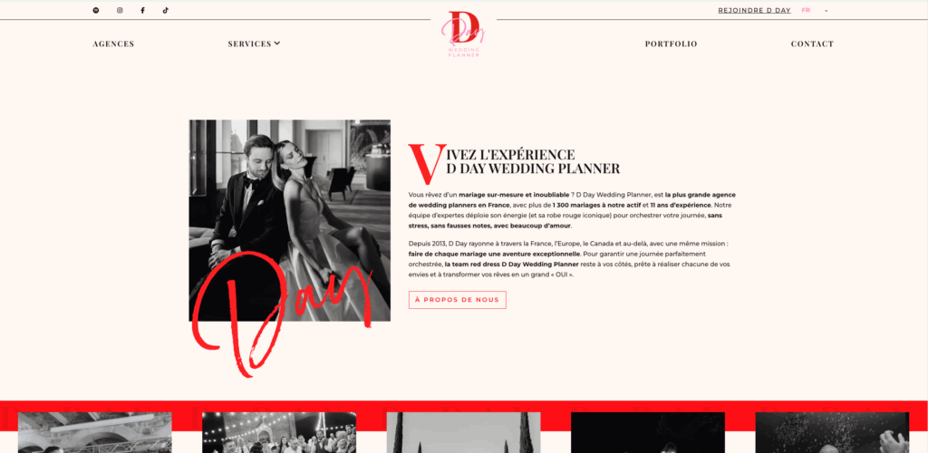 Nous avons repensé le site pour mieux coller à la nouvelle image de DDay Wedding Planner, en retravaillant le design et l’ambiance visuelle. Nous avons aussi revu l’organisation des contenus pour rendre la navigation plus claire et plus agréable. Enfin, nous avons amélioré les performances techniques pour garantir un site plus rapide et plus fiable au quotidien.