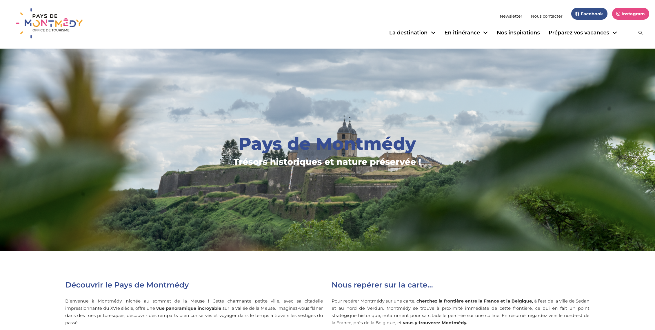 L’Office du Tourisme de Montmédy souhaitait disposer d’un site internet afin de valoriser l’attractivité de son territoire et de fournir aux visiteurs toutes les informations nécessaires pour organiser leur séjour : sites à découvrir, événements, hébergements, services pratiques et bonnes adresses locales.